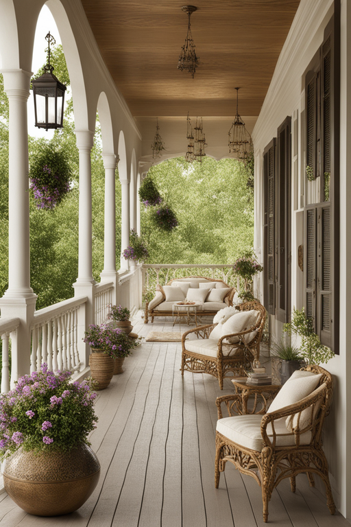 With a fusion of these styles on a veranda, envision a harmonious blend where Cottagecore's floral charm meets French Provincial's graceful sophistication.